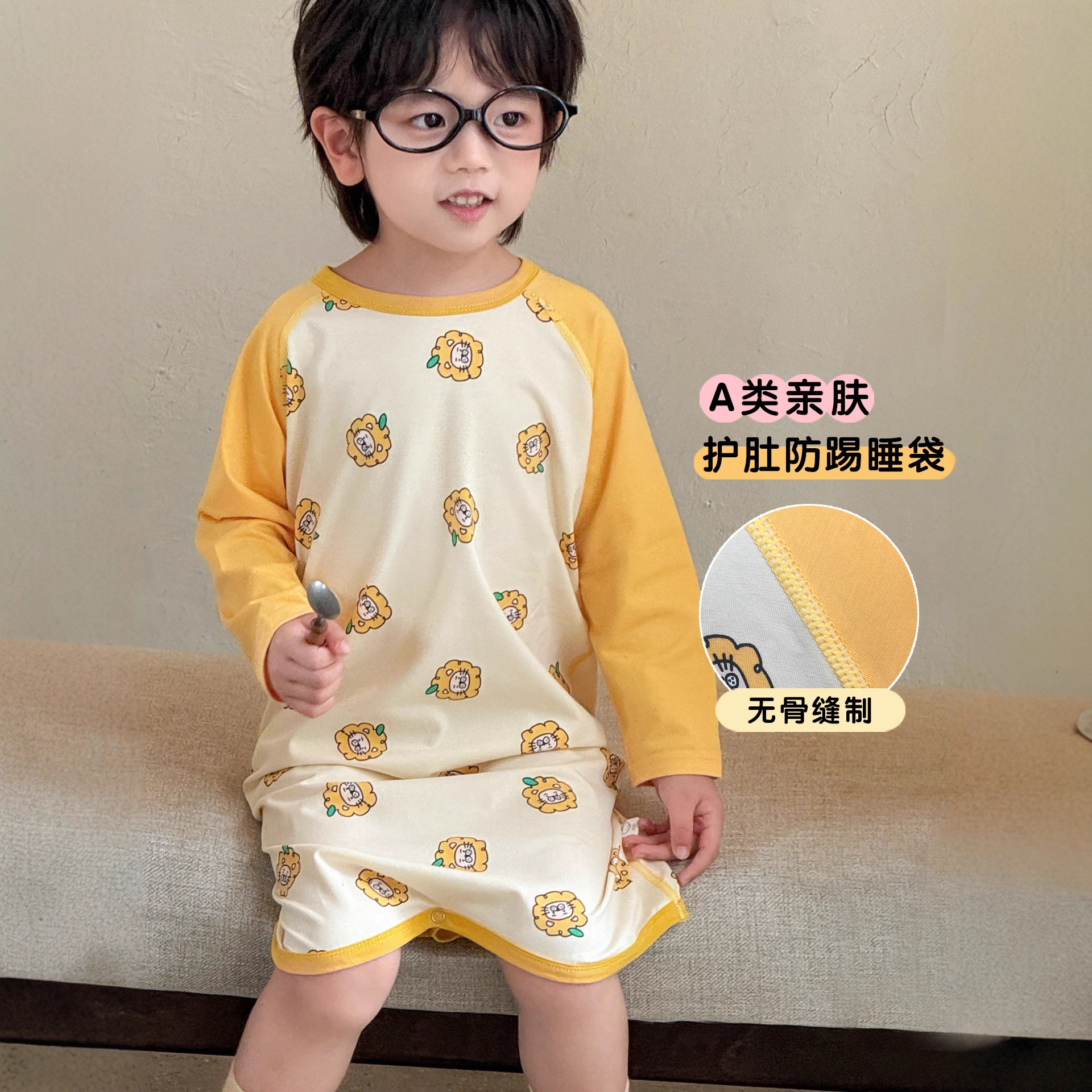Boys' One-Piece Pajamas 2025 New Spring and Autum Pure Cotton Long-Sleeved Baby Girl Anti-Kick Sleeping Bag Kidsren's Home Clothes
