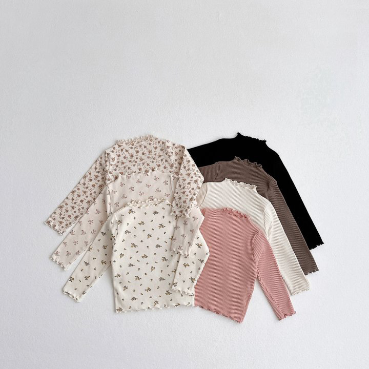 Girls' bottoming shirt Korean style children's clothing spring new children's clothing girls' striped small floral small turtleneck all-matching top
