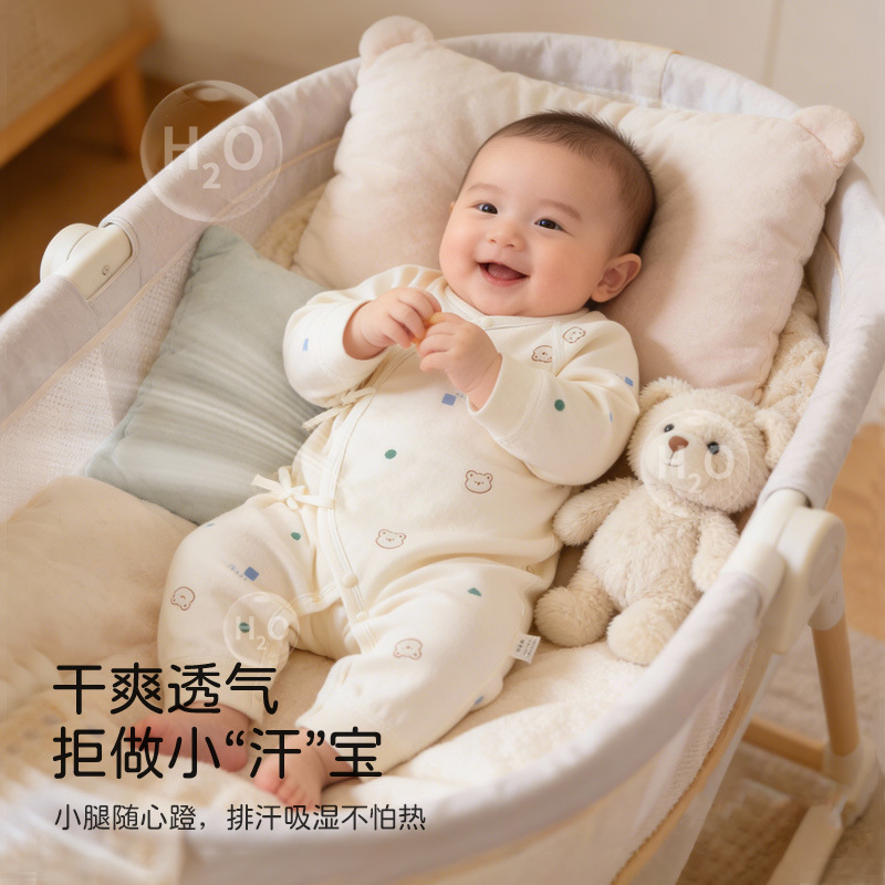 Baby Jumpsuit, Newborn Pure Cotton Type a Clothing, Spring & Fall 100-Day Full-Month Newborn Baby Clothes, Side-Opening Crawl Suit