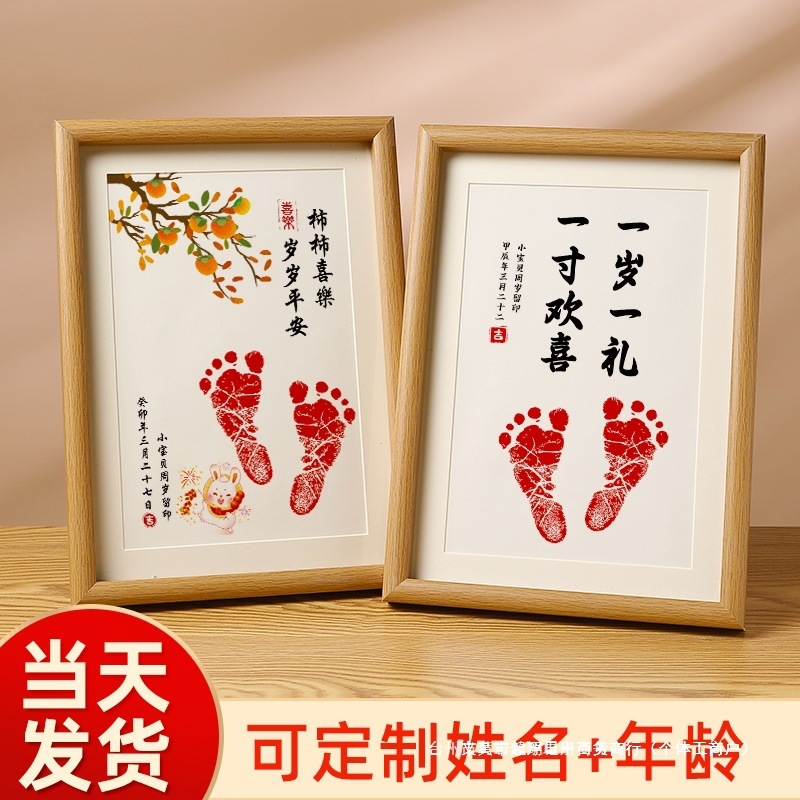 Baby's one-year-old hand and foot seal souvenir full moon ceremony sense Hundred Days hand and foot seal one-year-old one-year-old one-year-old one-year-old one-year-old hand and foot seal props photo frame