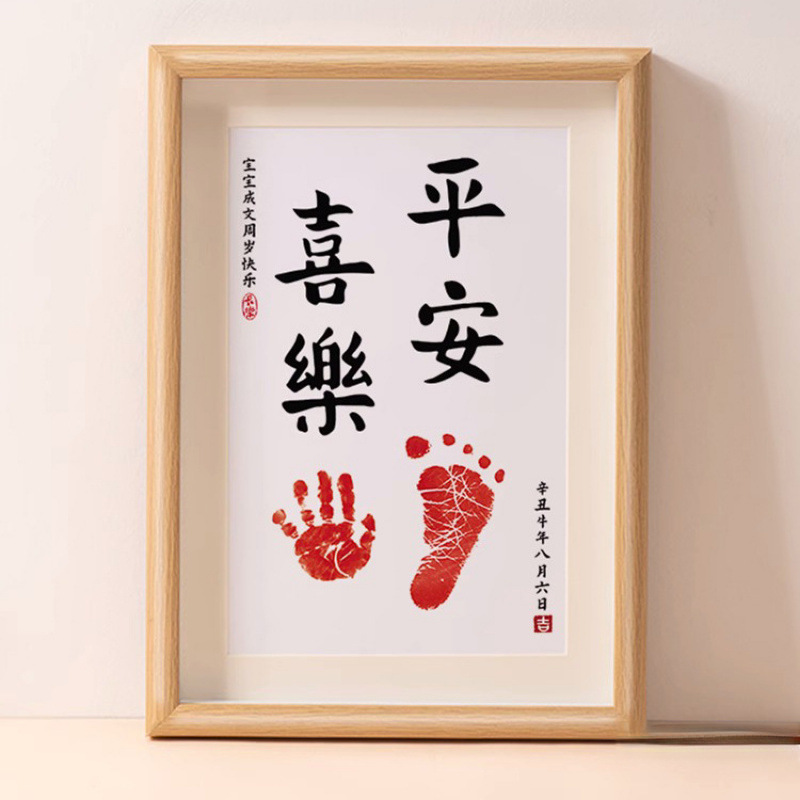 Baby's First Birthday Full Moon Photo Frame Calligraphy and Painting Contentment Ceremony Hand and Foot Baby's 100-Day Souvenir