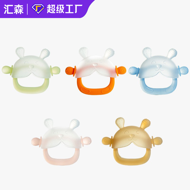 Silicone Rabbit Teeth Gel Infant Grinding Stick Baby Teeth Soothing and Bite Music Anti-Eating Hand Artifact Teeth Gel Toy