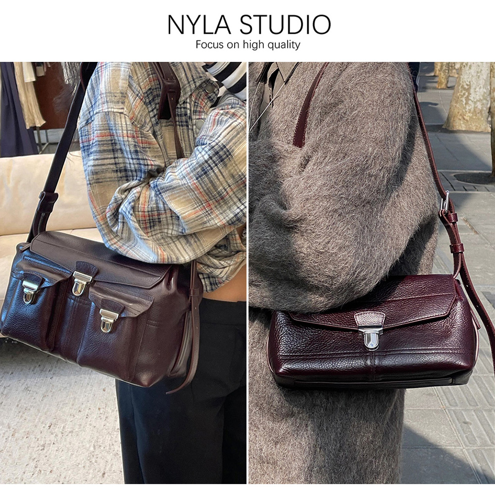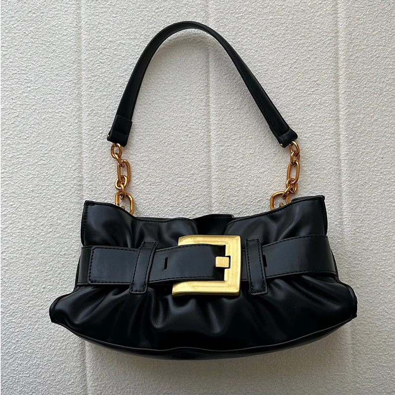 Rossy Bag Pleated Square Buckle Underarm Bag Versatile Retro Soft Leather Shoulder Solid Color Bag for Women Niche High-End