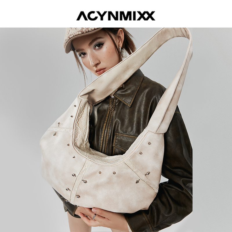 Acynmixx Wasteland Style Lace Bag 2025 New Half-Moon Dumpling Bag Large Capacity Tote Bag Single Shoulder Crossbody Bag