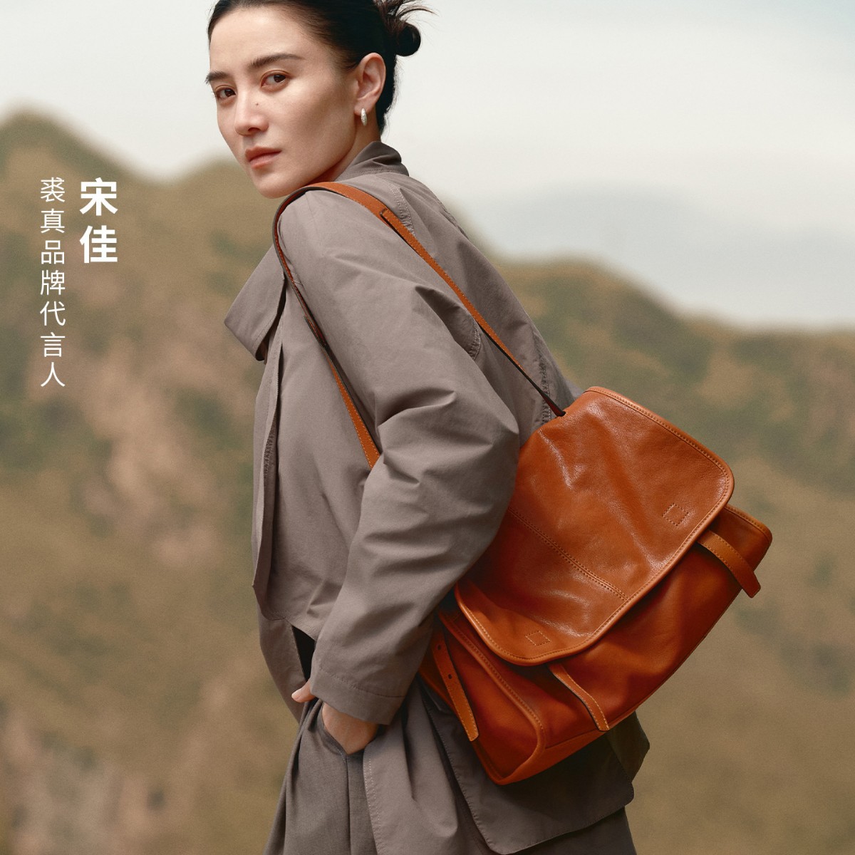 [Song Jia's Same Style] Qiu Zhen Vegetable Tanned Goatskin Messenger Mail Bag Relaxed Large Capacity Commuter Casual Messenger Bag for Women