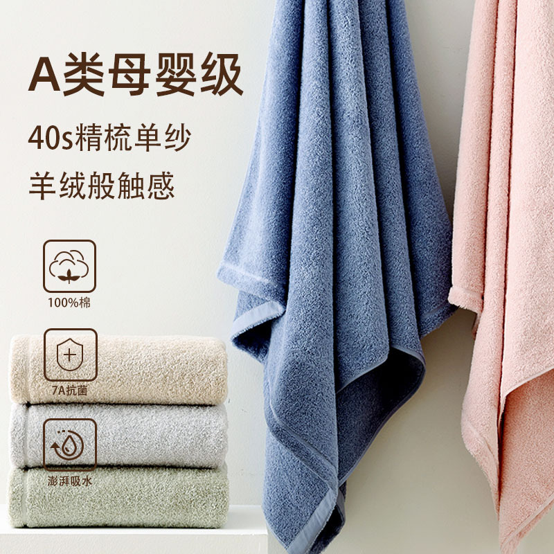 7A Antibacterial Pure Cotton Bath Towel, Class a All-Cotton Adult Bath Wrap, Beach Towel, Extra Large, Soft and Absorbent, 80*160