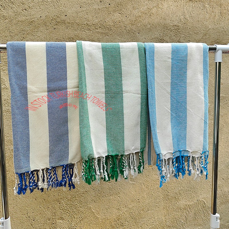 2024 In-Stock American-Style Fringed Natural Beach Towel, Edged Striped Turkish Bath Towel, Quick-Drying Towel