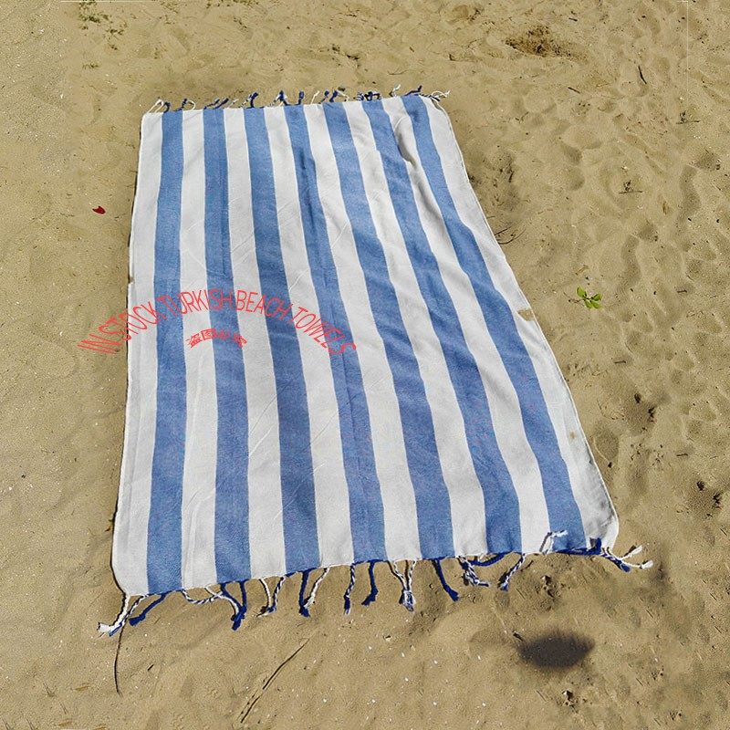 Blue Wide-Striped Beach Towel Blanket Turkish Beach Towels Cotton 180*100 Sand-Free
