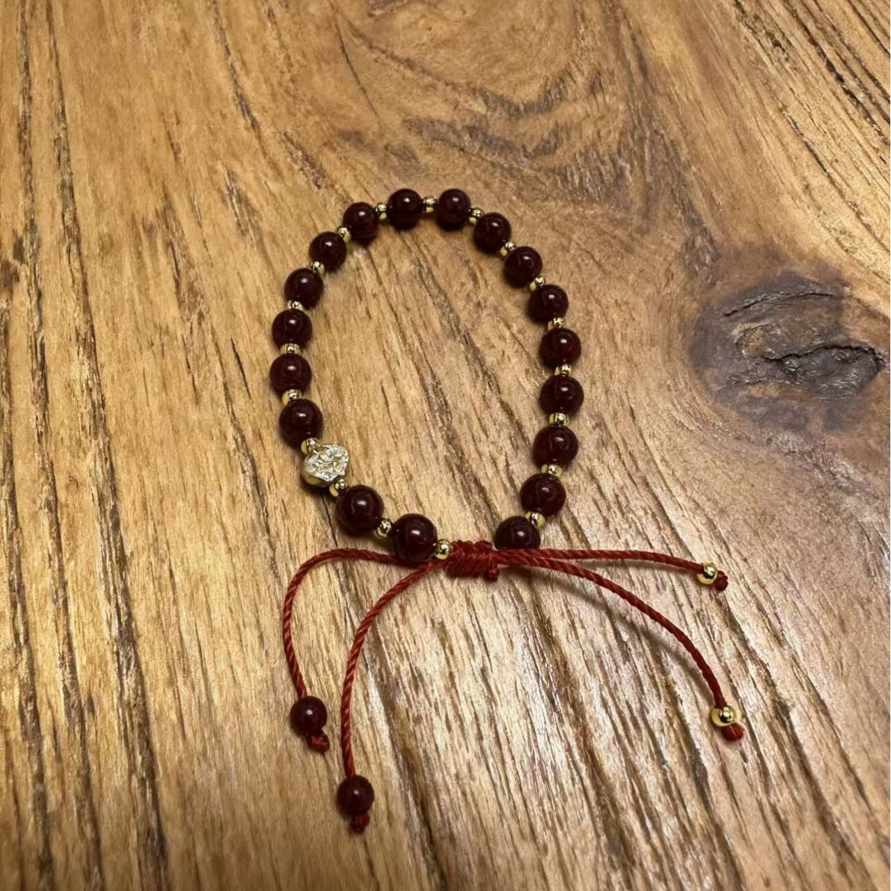 [Red Bean] Southern Red Agate Crystal Bracelet Girls Street Stall Bracelet Handmade Red Rope Bracelet Wholesale
