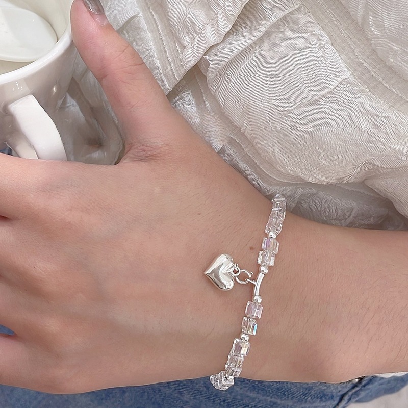 S925 Sterling Silver Heart Crystal Bracelet Handmade Chain for Women Creative Stylish Light Luxury Hot-Selling Korean Version Versatile Bracelet