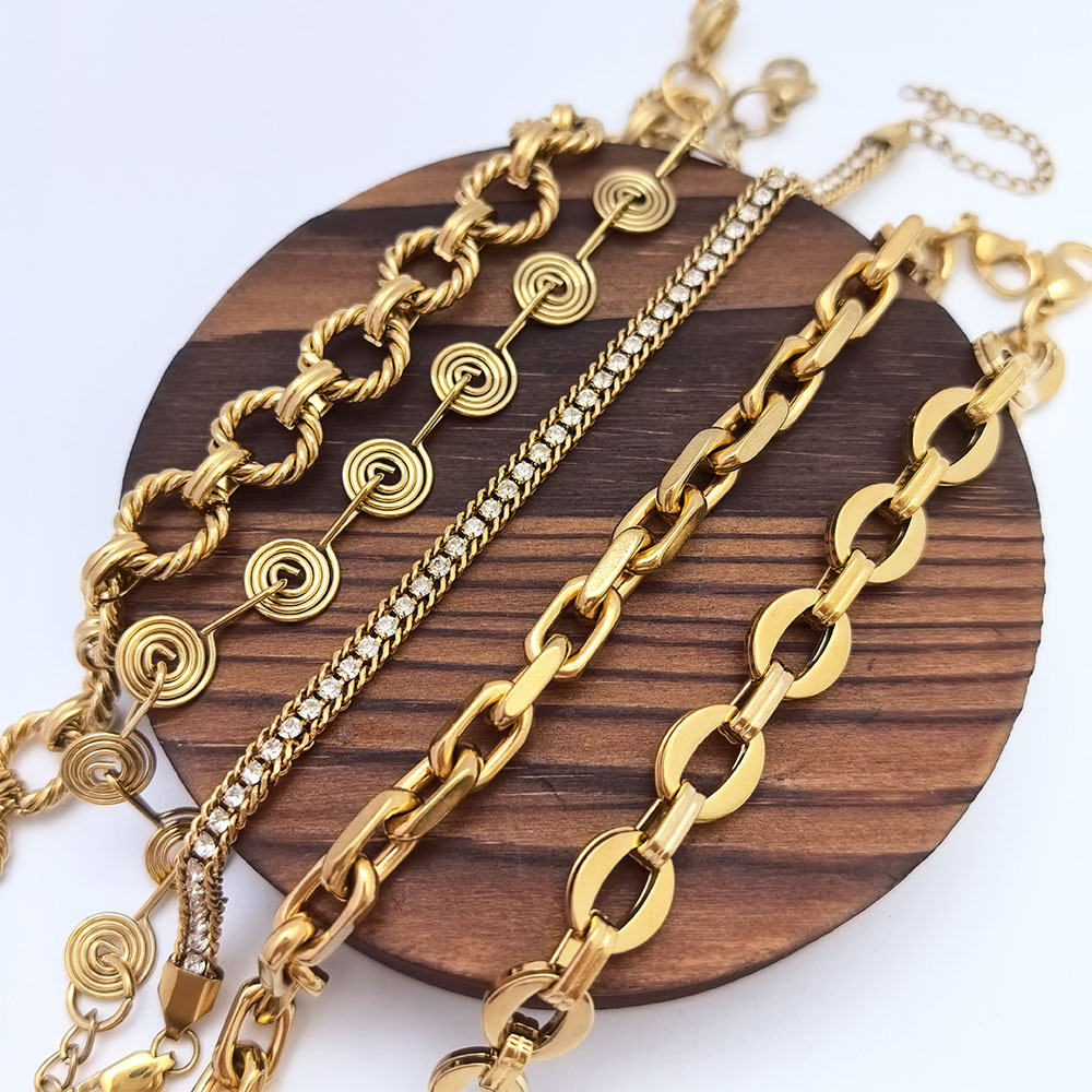 18K Gold Stainless Steel Geometric Square Bean Bone Shaped Chain DIY Bracelet Cuban Handmade Jewelry Hand Jewelry Wholesale