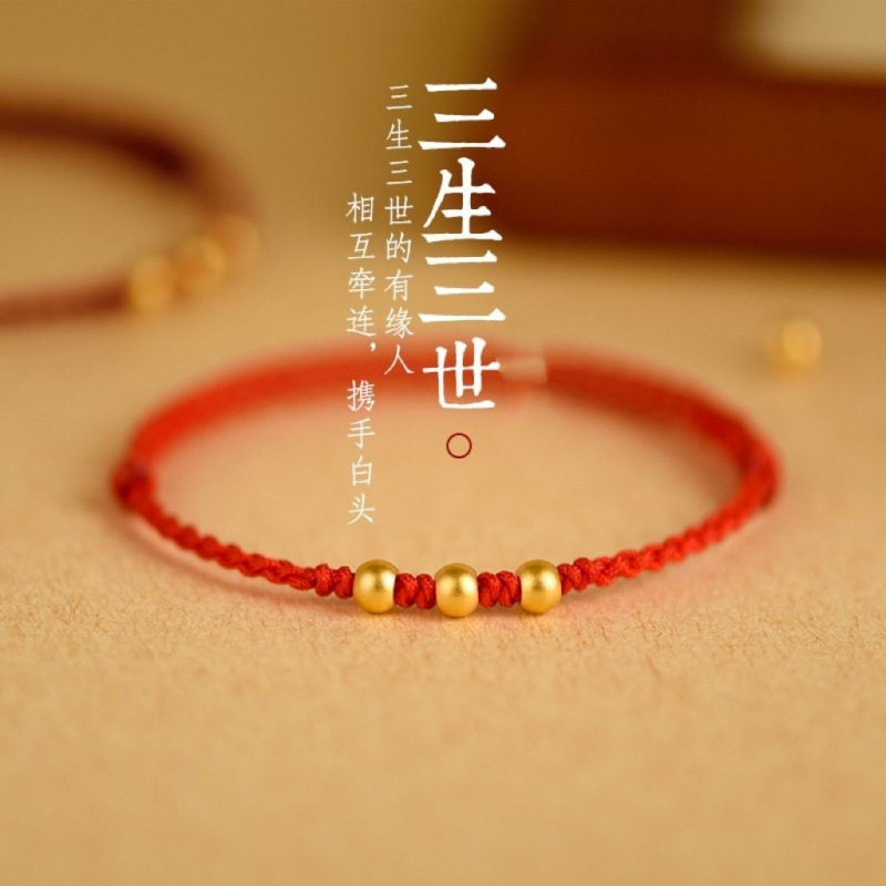 Three Lives Three Worlds Peace and Good Luck Beads Couple Bracelet Women's Hand-Woven Zodiac Year Red Rope New Red Bracelet