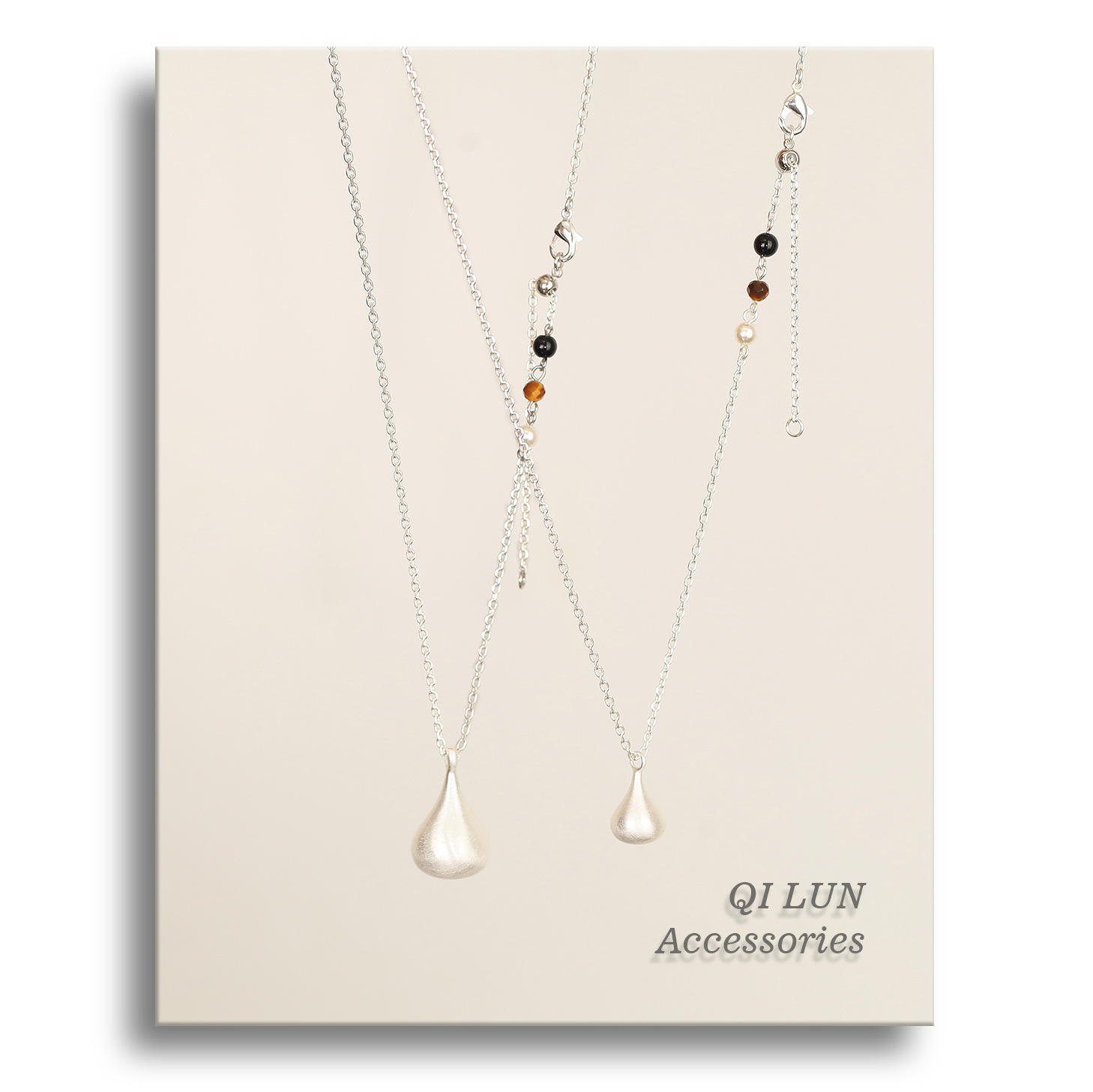 Water Drop Pendant Handmade Brushed Necklace Natural Black Agate Tiger Eye Stone Clavicle Chain Accessories Retro Long Pullable