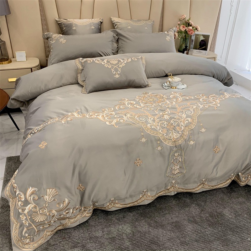 Light luxury high-grade European embroidery four-piece cotton high-end luxury quilt cover bed sheet fitted sheet bedding