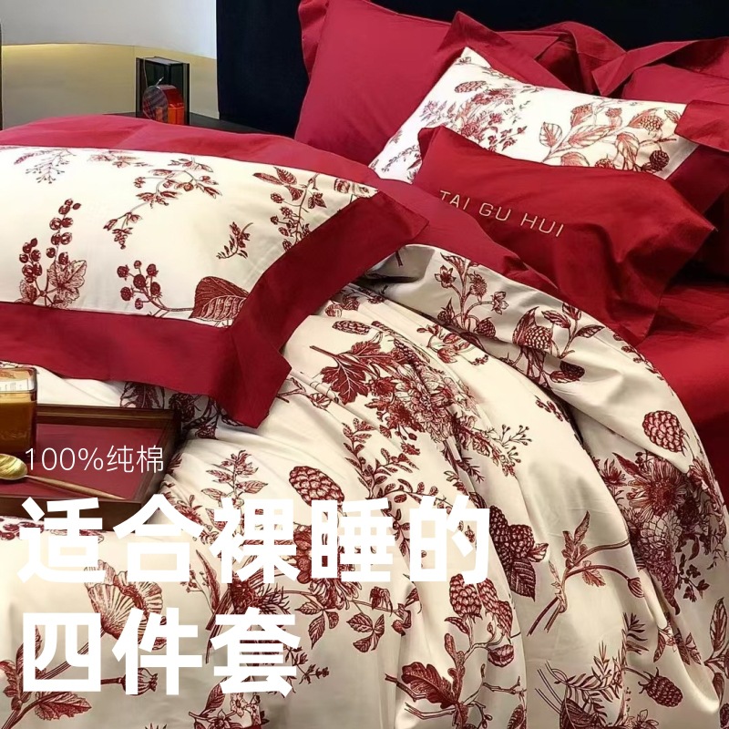 Class A 100 Light Luxury Retro Long-staple Cotton Wedding Four-piece Wedding Red High-grade Pure Cotton Wedding Room Bedding