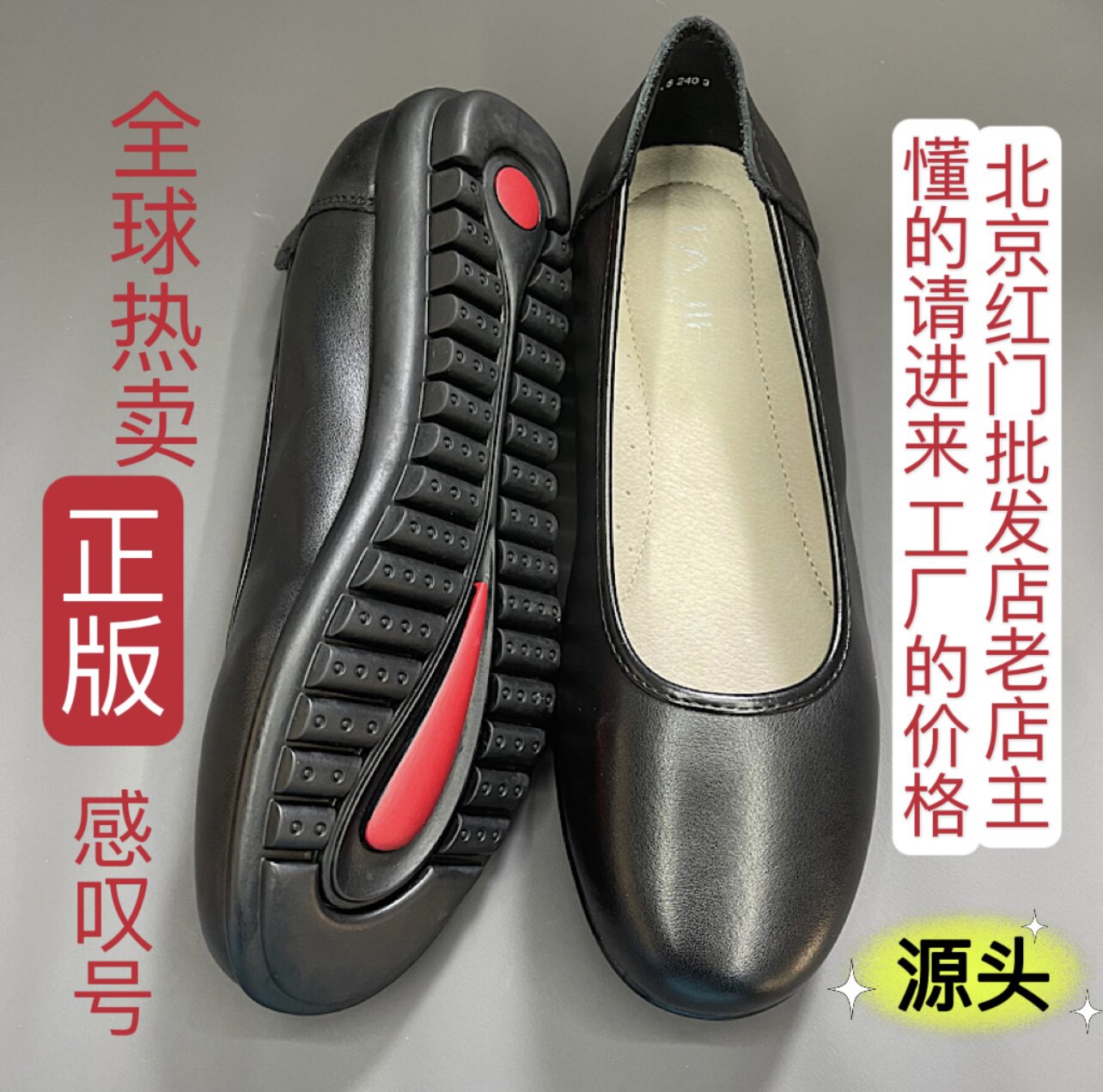 She Is a Stewardess Who Is Always Busy, Exclamation Mark Black Flight Work Shoes, Flat Professional Women's Shoes, Round Toe Large Size Single Shoes
