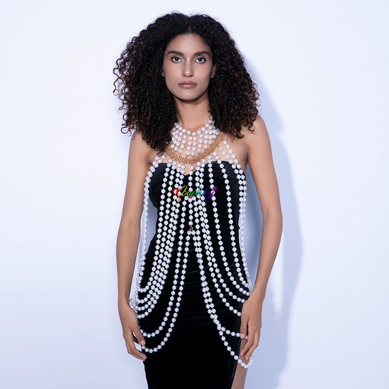 Amazon Explosive Tassel Pearl Necklace Light Luxury Sweater Necklace Body Chain Multi-Layer Body Chain Pearl Chest Chain