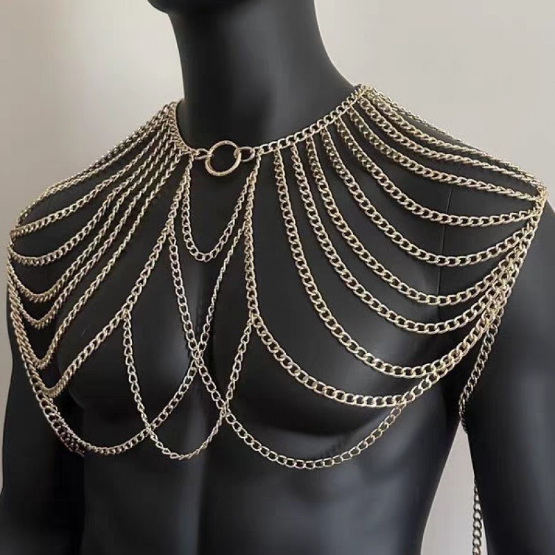 European and American Cross-border Metal Men's Shoulder Body Chain Sexy Necklace Bar Club Party Style Accessories