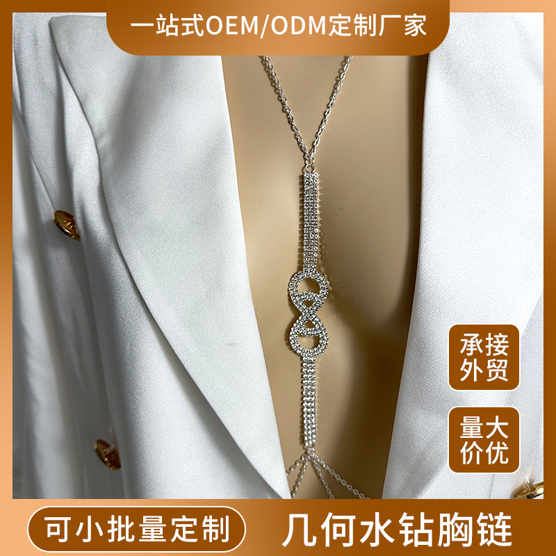 Geometric Rhinestone Chest Chain Body Chain Pure Desire Necklace Sexy Chest Chain Internet Celebrity Jewelry Chain Spicy Girl Accessories