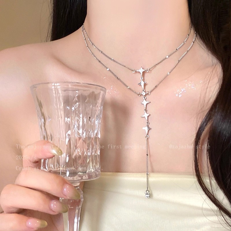 Moon Reflecting the Galaxy ~ Double Layer Necklace for Women, 2025 New High-End Clavicle Chain Necklace for Summer