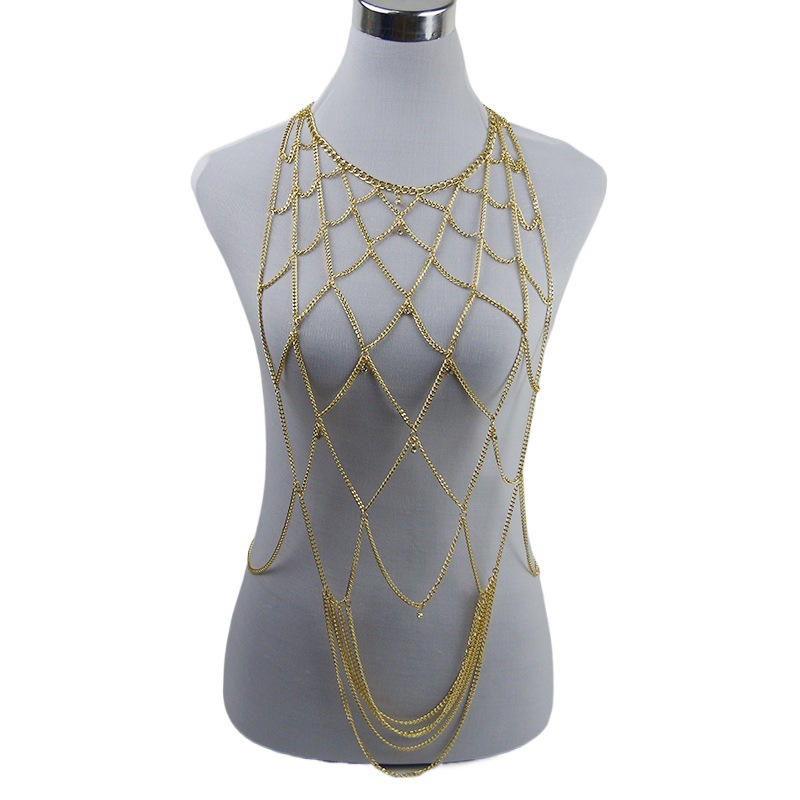 European and American Cross-Border Fashion Jewelry Necklaces, Sexy and Versatile, Personalized Nightclub Body Chains, Mesh Handmade Chest Chains