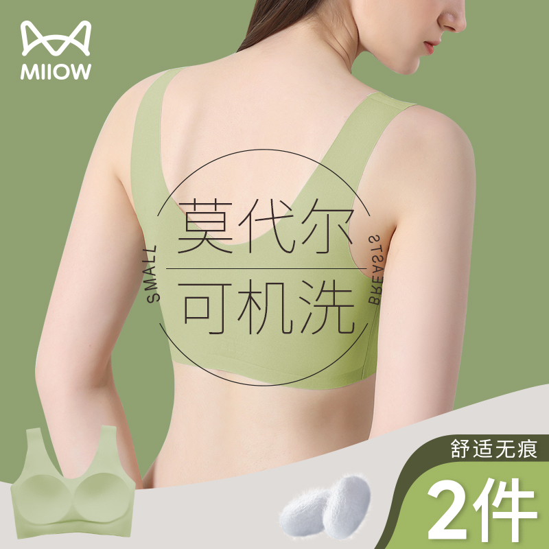 Catman Modal Underwear Women's Seamless Bra Sports Small Chest Push-Up Beautiful Back Vest-Style Integrated Bra Summer Thin Style