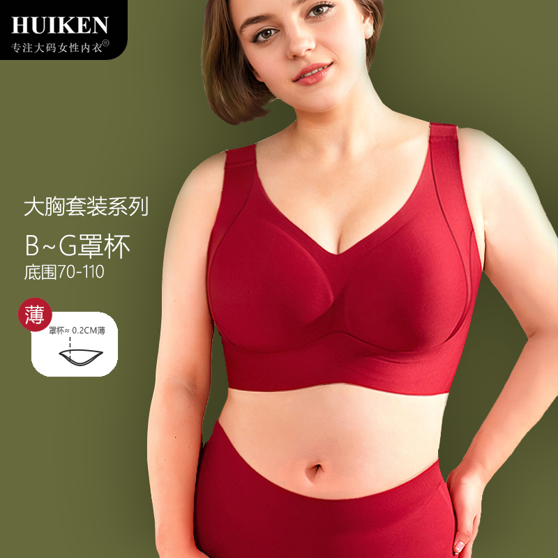 Red Large Size Bra Set for the Year of Birth, Thin Style Without Underwire, Vest-Style, Side Support, Large Bust Bra, Seamless Underwear for Women