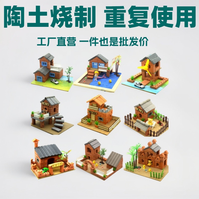 Original direct Amazon simulation mud brick building mini hand-assembled House Villa model toys