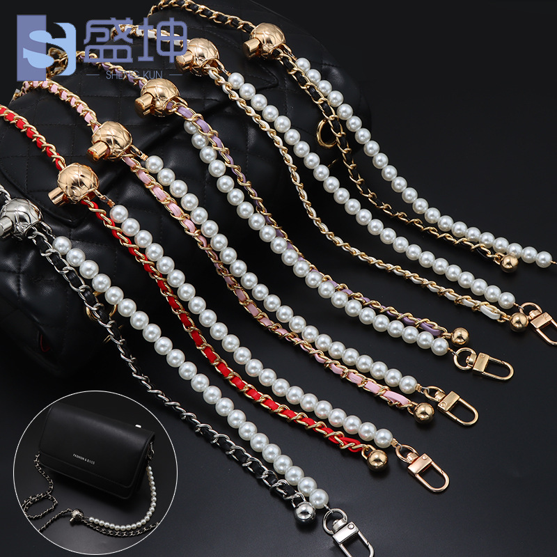 New Bag with Metal Buckle Bag Accessories Bag Chain Pearl Bag Shoulder Strap Bag Chain Women's High-end Crossbody Chain