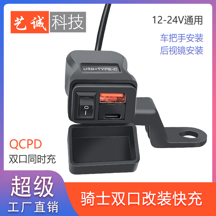 New motorcycle electric car double bracket mobile phone charger knight square QCPD fast charging car charging waterproof belt switch