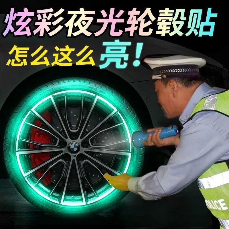Car wheel hub sticker reflective warning night electric car motorcycle bicycle wheel hub personalized decorative luminous sticker