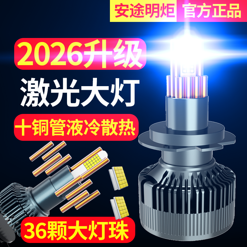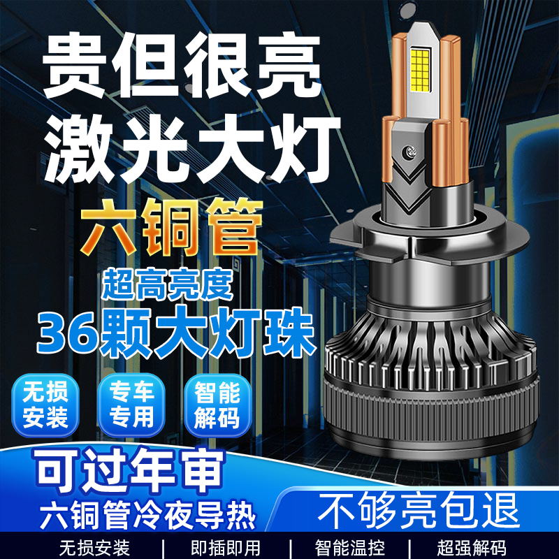 Six Copper Tubes, 36 Led Bulbs, Super Bright Led Car Headlight H7 Modification 9005 High and Low Beam Integrated H4 Spotlight 24V Truck