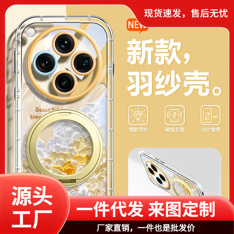 Suitable for Oppofindx8 Mobile Phone Case Findx8S+ Oil Painting Integrated Stand Oppofindx8Pro Fresh Feather