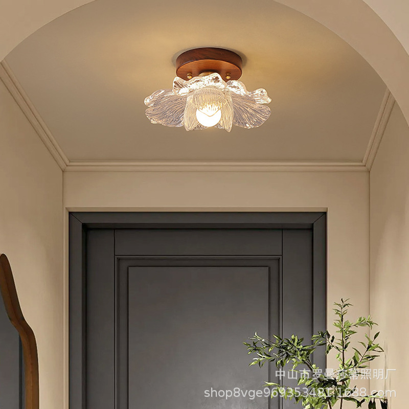 Antique Corridor Light Entrance Balcony Ceiling Light American Style Retro Walnut Cloakroom Lamps