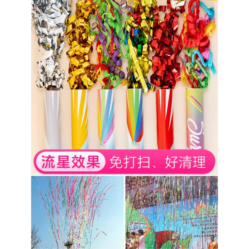The ribbon fireworks tube is good for cleaning debris, opening ceremony, wedding special congratulations salute, large-scale activities to celebrate the hand twisting of the gun