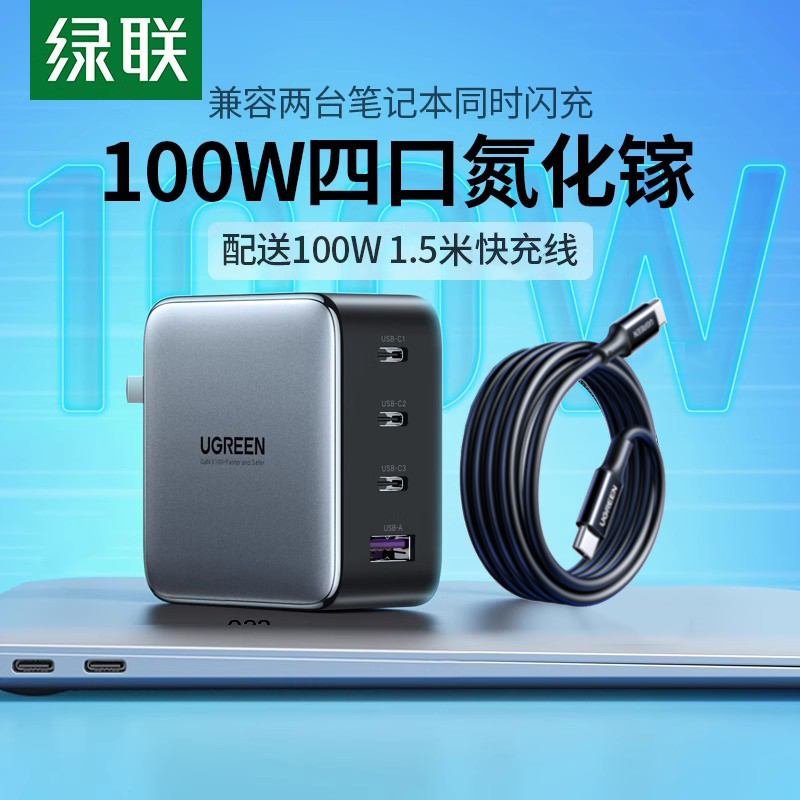 Greenlink 100W Gallium Nitride Charger Multi-Port Pd Fast Charging Head Suitable for Apple Xiaomi 17Pro Huawei Macbookair Laptop Tablet Mobile Phone Type-C Four-Port Charging Plug