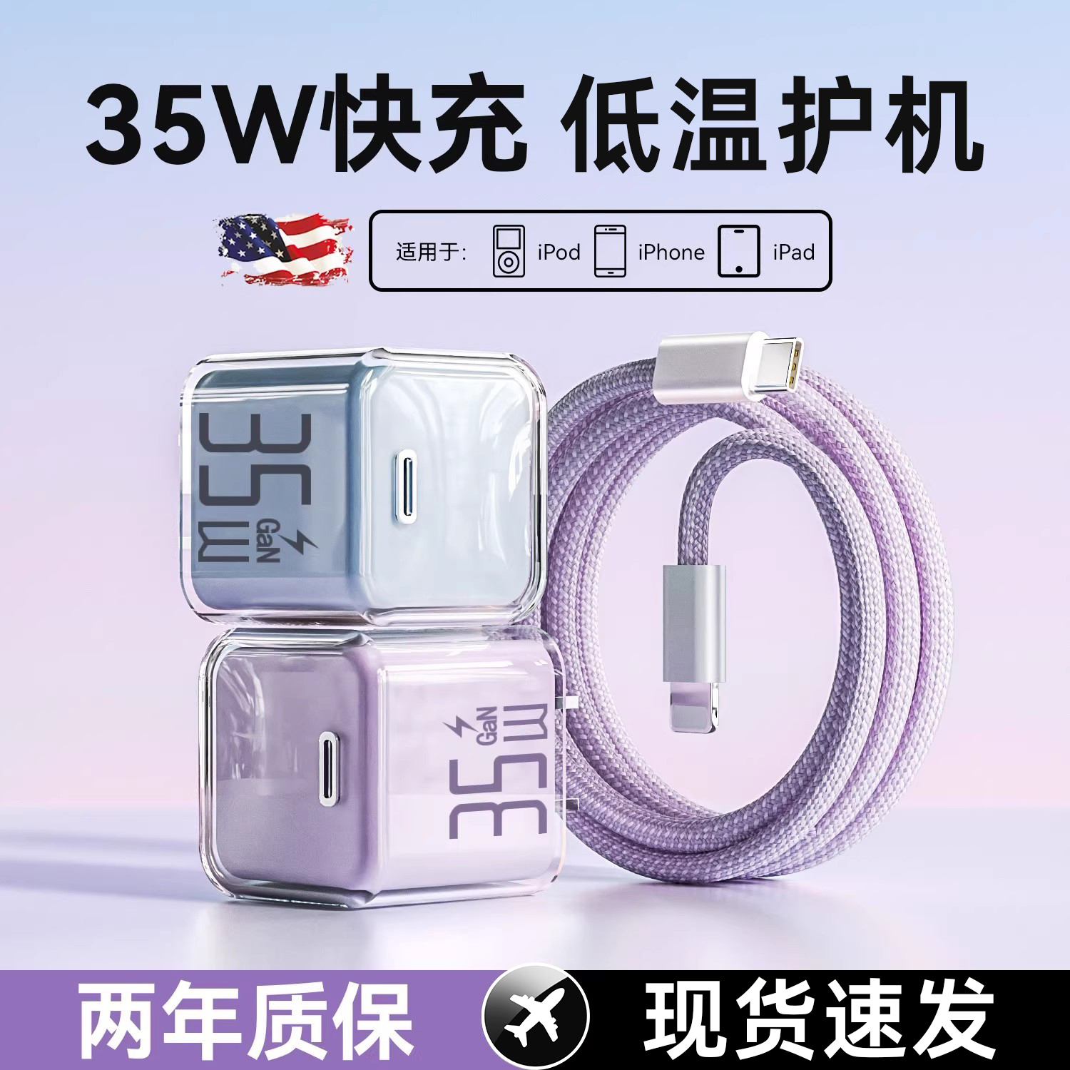 Suitable for Apple 16 Charger iPhone 15 Pro Max Small Ice Cube Charging Head 14Plus Genuine Pd Fast Charge 17 Plug 14 Data Cable 13 Mobile Phone 35W One Set Typec Tablet iPad