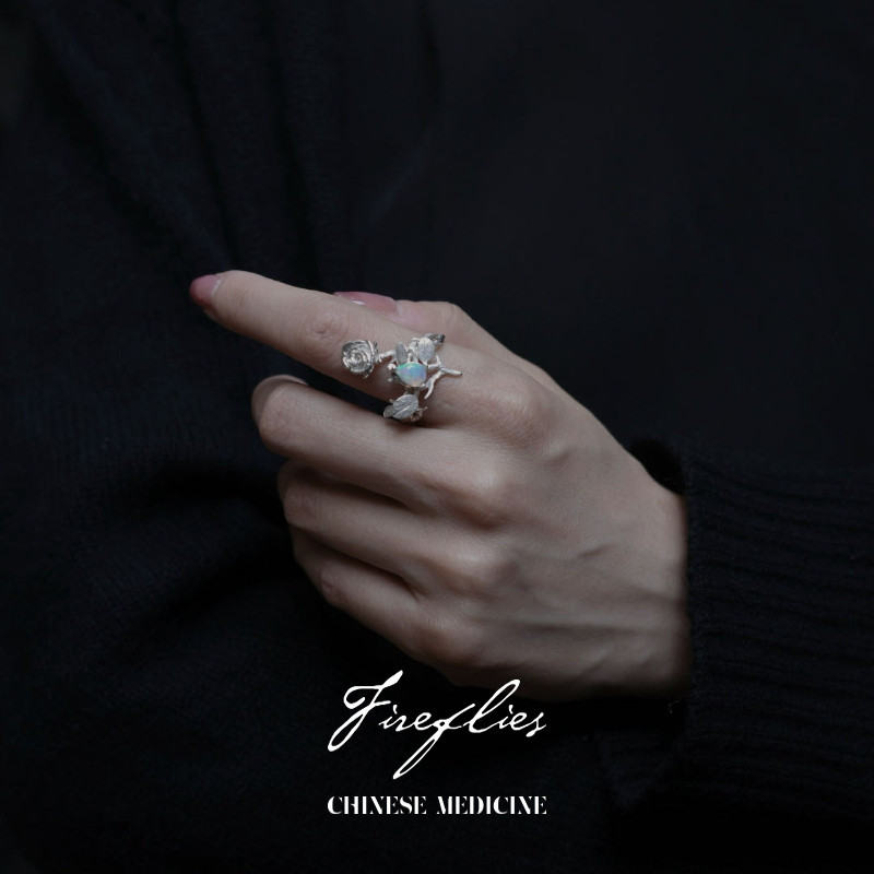 Fireflies X Chinese Medicine Cooperative 925 Silver Opal Rose Ring Original Design