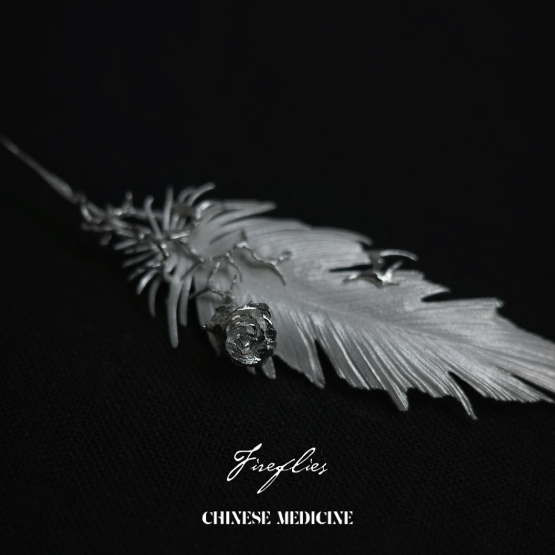 Fireflies X Chinese Medicine Collaboration Model Feather Brooch 925 Sterling Silver for Men and Women