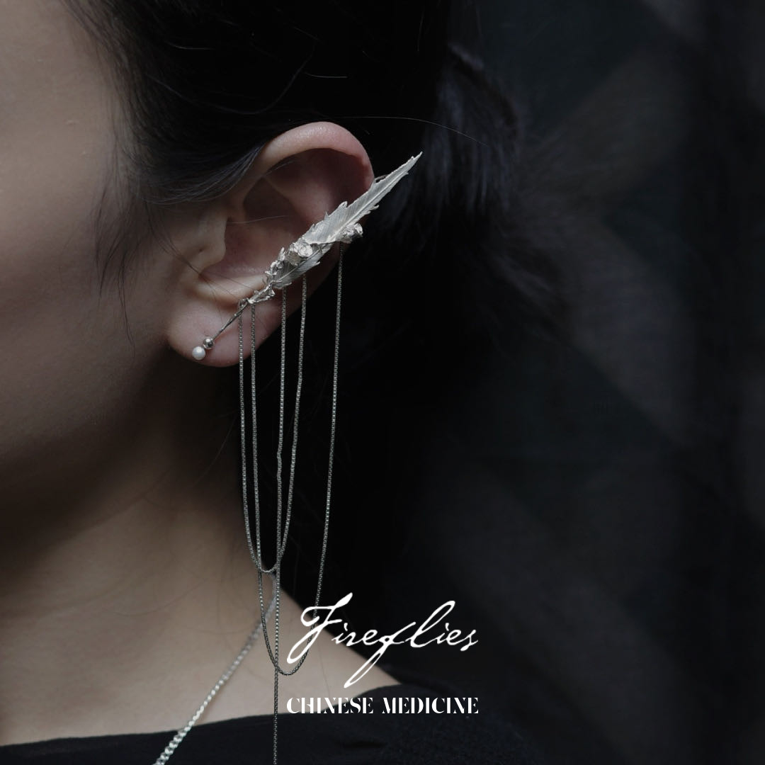 Fireflies X Chinese Medicine Collaboration Ear Spike Feather Tassel Earrings Original Design