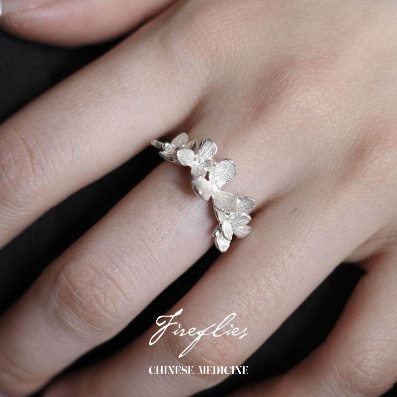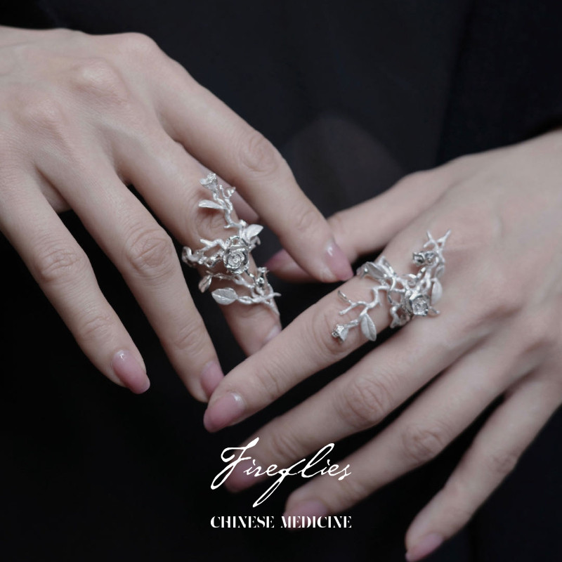 Fireflies X Chinese Medicine Collaboration Model Branch Rose Ring Original 925 Silver Ring