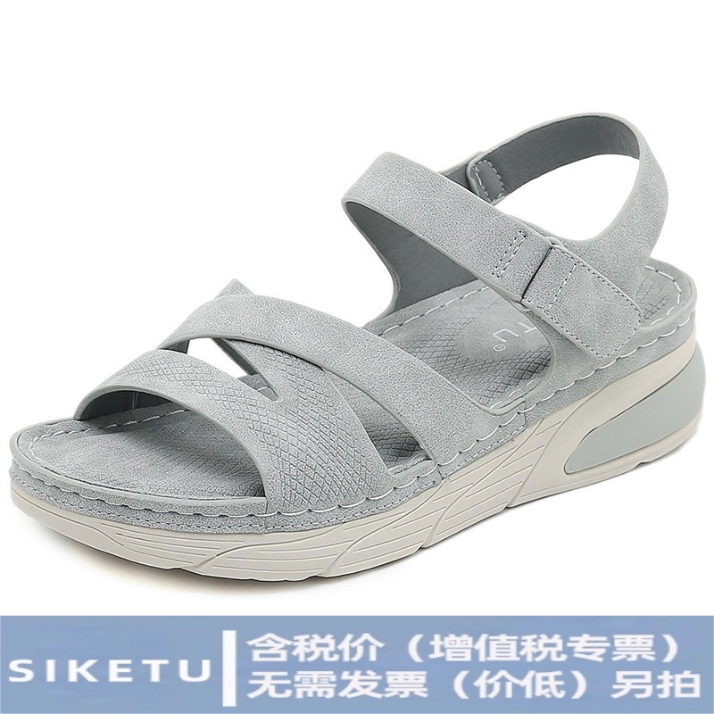 Factory direct foreign trade plus size comfortable mother sandals new flat breathable baotou sports hollow Roman sandals