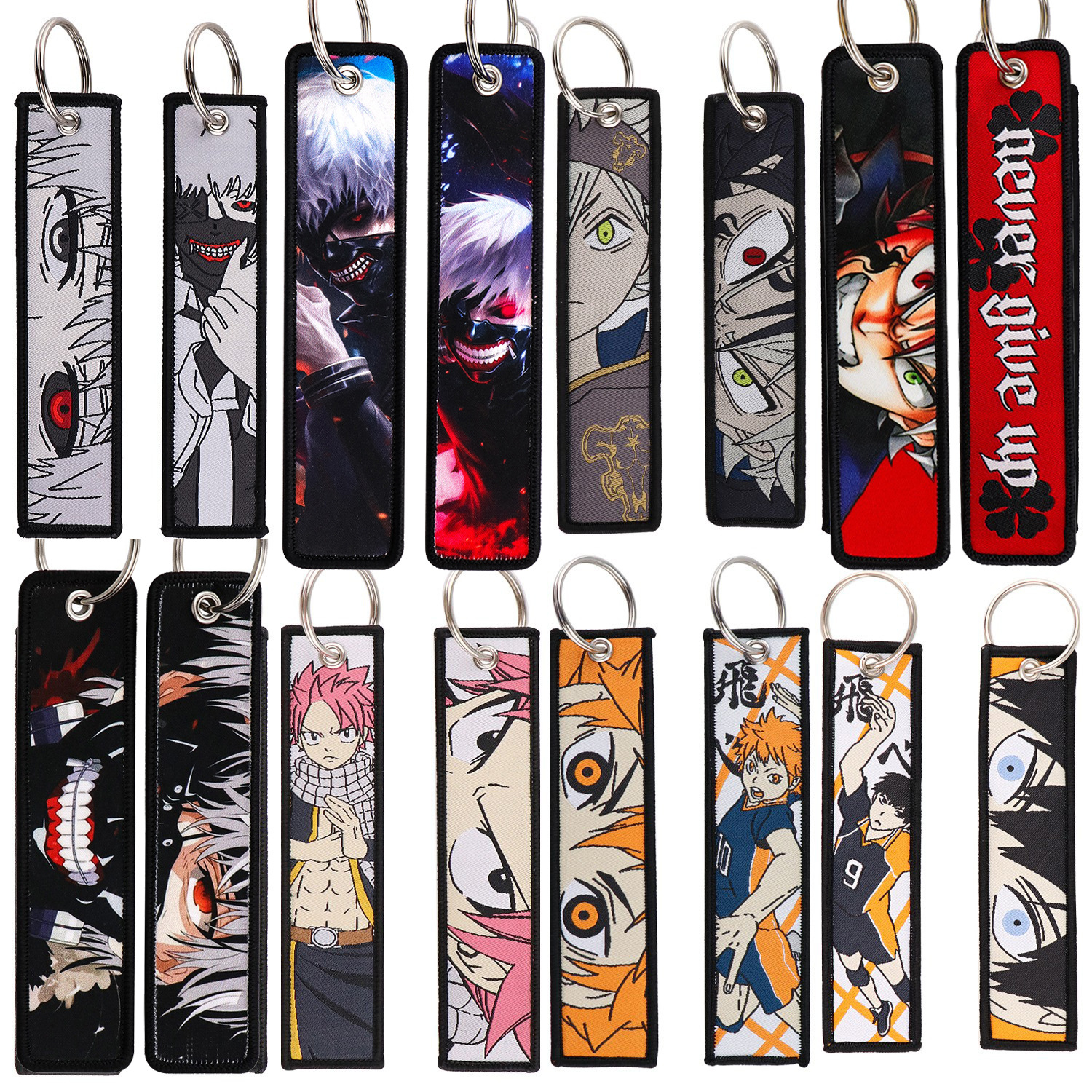 Volleyball Woven Label Keychain Lanyard Tokyo Ghoul Charm Four-Leaf Clover Fabric Accessories Trendy Merchandise