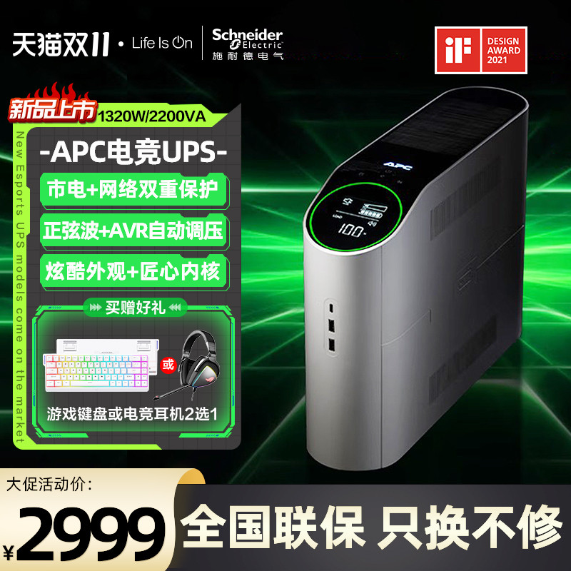 Apcups Uninterruptible Power Supply Bgm2200-Ch Gaming Ups Voltage Stabilization and Long Battery Life Rgb2200Va