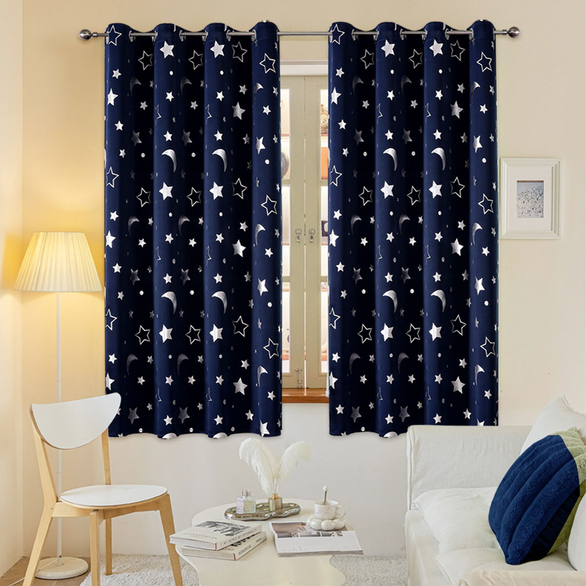 Foreign trade cross-border curtain high precision hot silver star shading punch-free curtain fabric curtain curtains