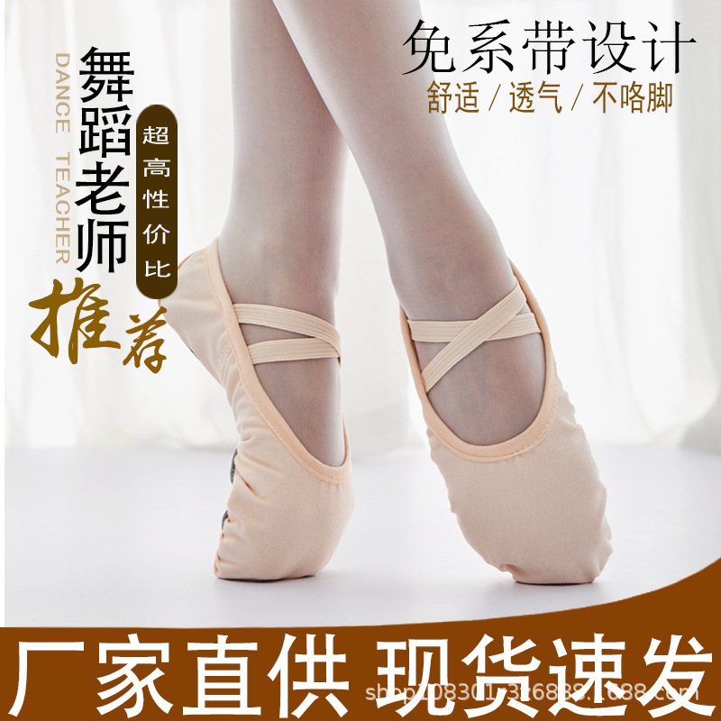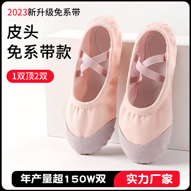 Lace-free dance shoes women's soft bottom body practice dancing shoes leather toe less children's dance shoes ballet shoes wholesale