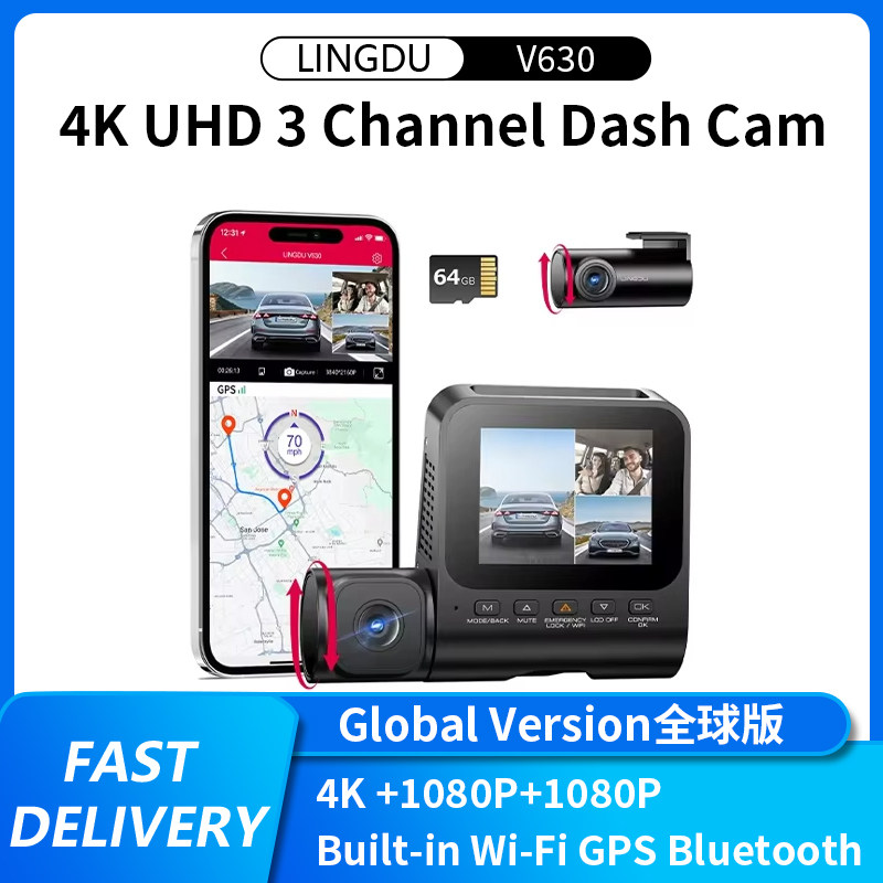 LINGDU 4K Dash Cam V630 Car Dvr Front and Inside Dash Camera