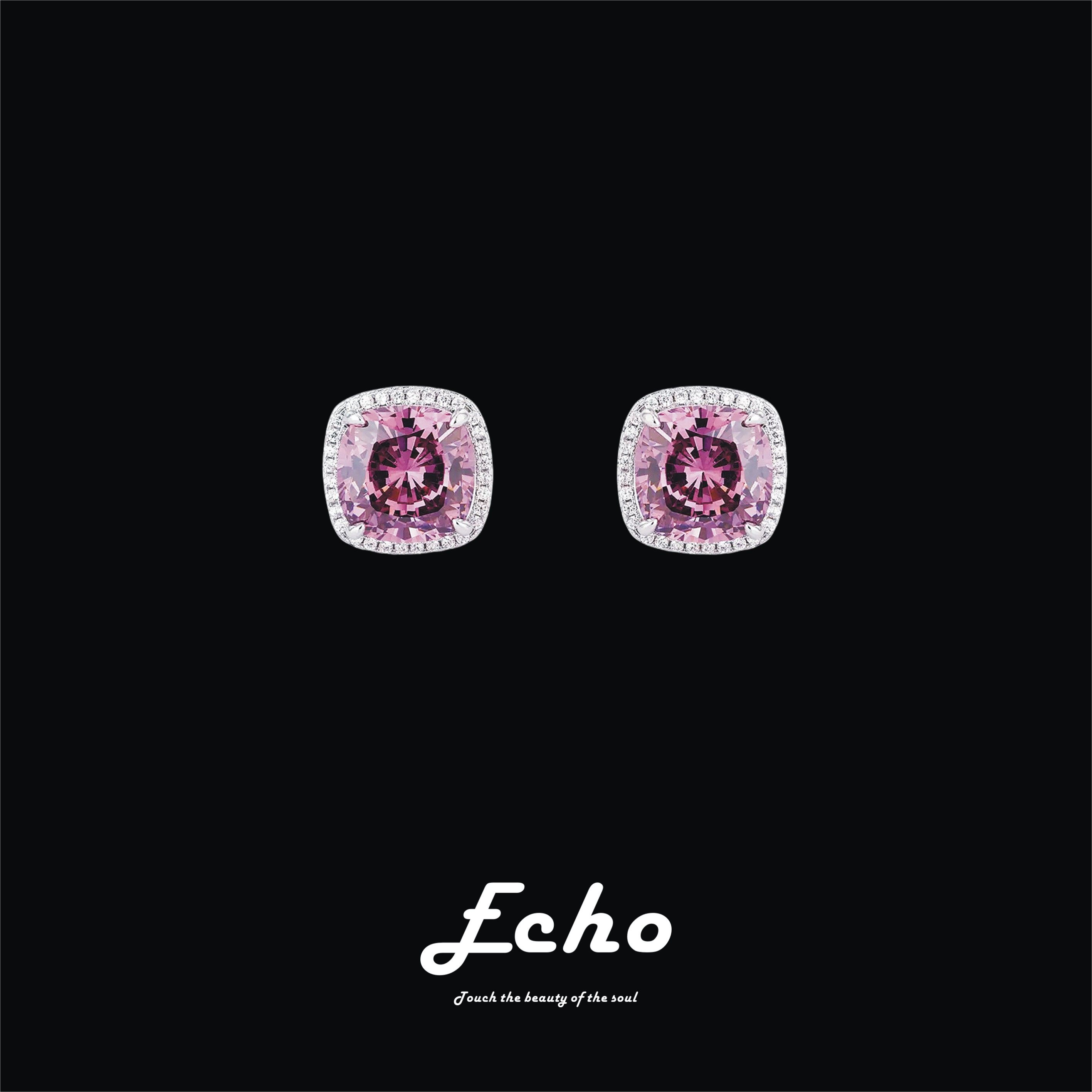Echo Earrings Dg011 Purple Gemstone with White-Edged Square Diamonds, Elegant Commuter Earrings with a High-End Feel, Purple Light Luxury Versatile Silver Needle