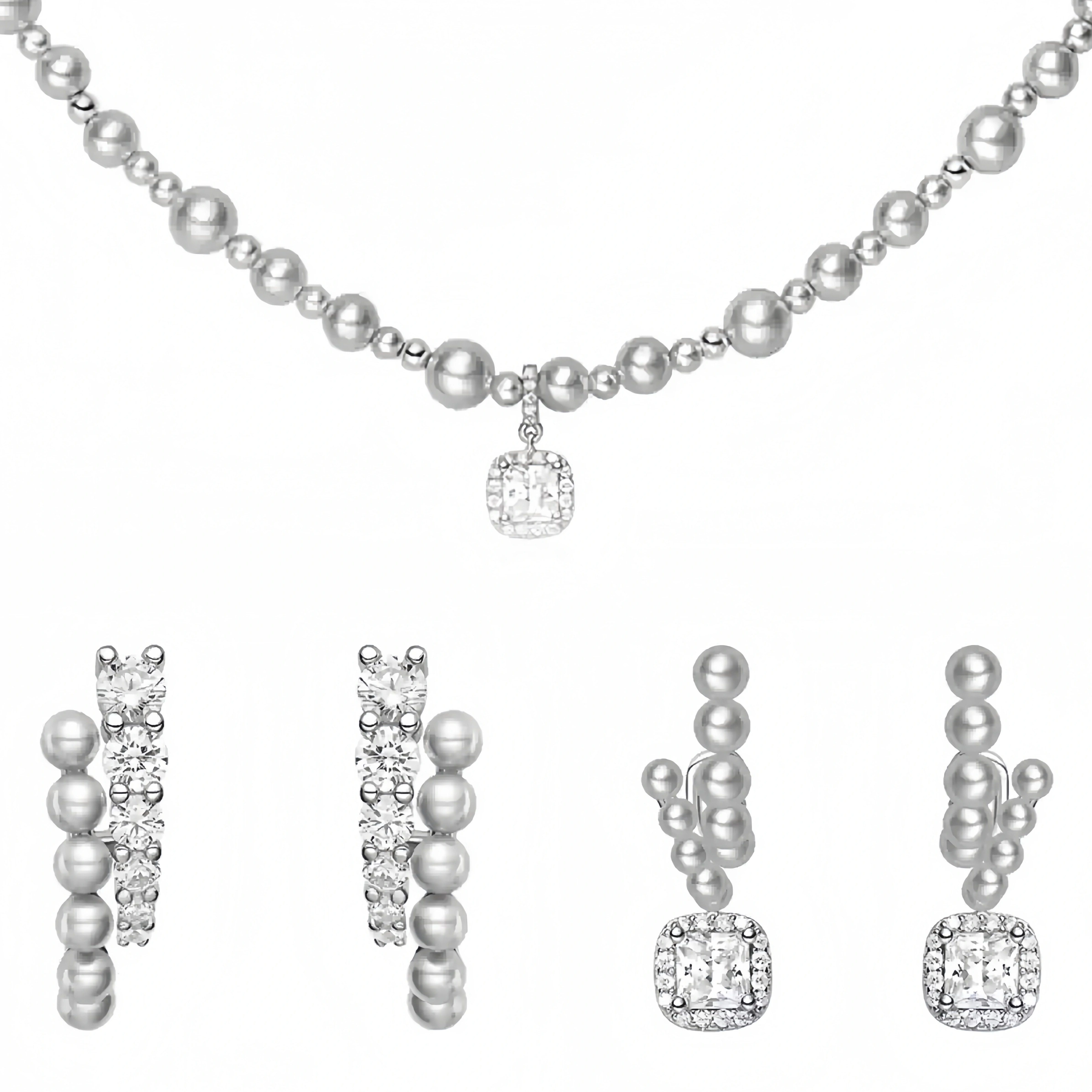 Hefang Bubble Sugar Cube Necklace Double-Layer Bubble Earrings Ear Studs Light Luxury 925 Silver Pearl Clavicle Chain