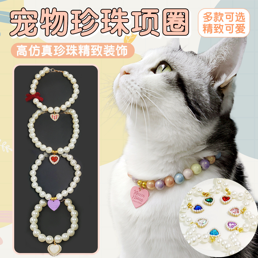 Pet Cat Devon Kitten Dog Pearl Necklace Collar Small Chanel-Style Gemstone Bowknot Doll Accessories Cross-Border